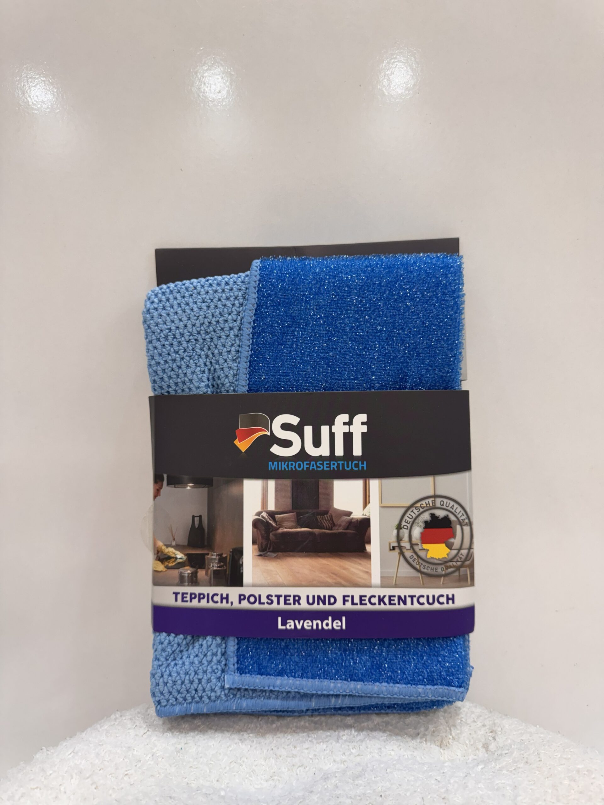 De Suff Lavendel Kapperdoek combineert “nagel + microvezel” technologie in één doek. De geribbelde zijde verwijdert hardnekkige vlekken, terwijl de gladde zijde polijst en stof opneemt. Geschikt voor o.a. autostoelen, plafondbekleding en tapijten in huis.